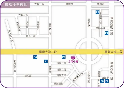 搭乘公車:300~309、48、70、77,於「忠明國小站」下車。